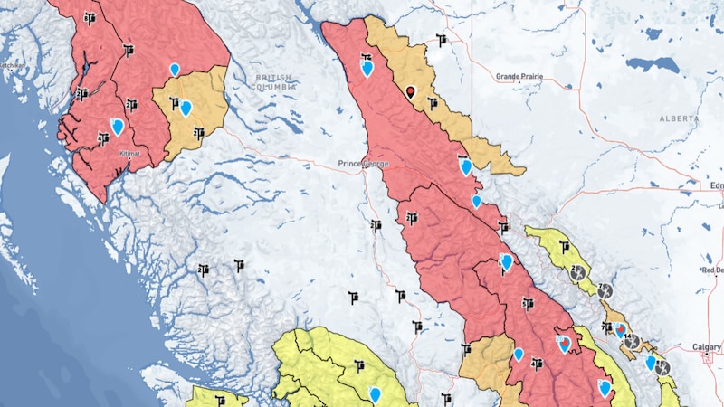 For the western slope of the Rockies, including the Pine Pass and Monkman Provincial Park, the danger rating is listed as ‘high’.