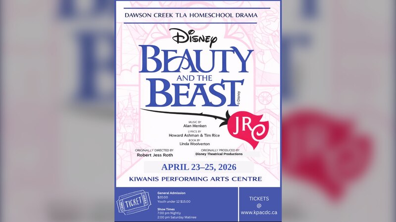 Dawson Creek TLA Homeschool Drama is presenting Beauty and the Beast Jr. at the Kiwanis Performing Arts Centre.