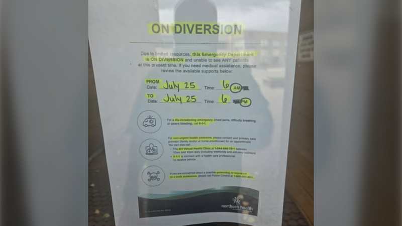 The emergency department in Tumbler Ridge is on diversion. Northern Health said the Health Centre’s daytime emergency department was interrupted Monday at 6:00am due to staffing challenges.