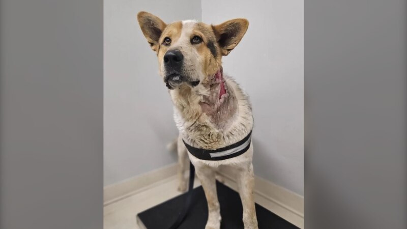 According to the animal welfare agency, the dog, now named Rocky, was transferred to Vancouver from northern B.C. to undergo “desperately needed” treatment after he was mauled by a bear and suffered injuries to the right side of his neck.