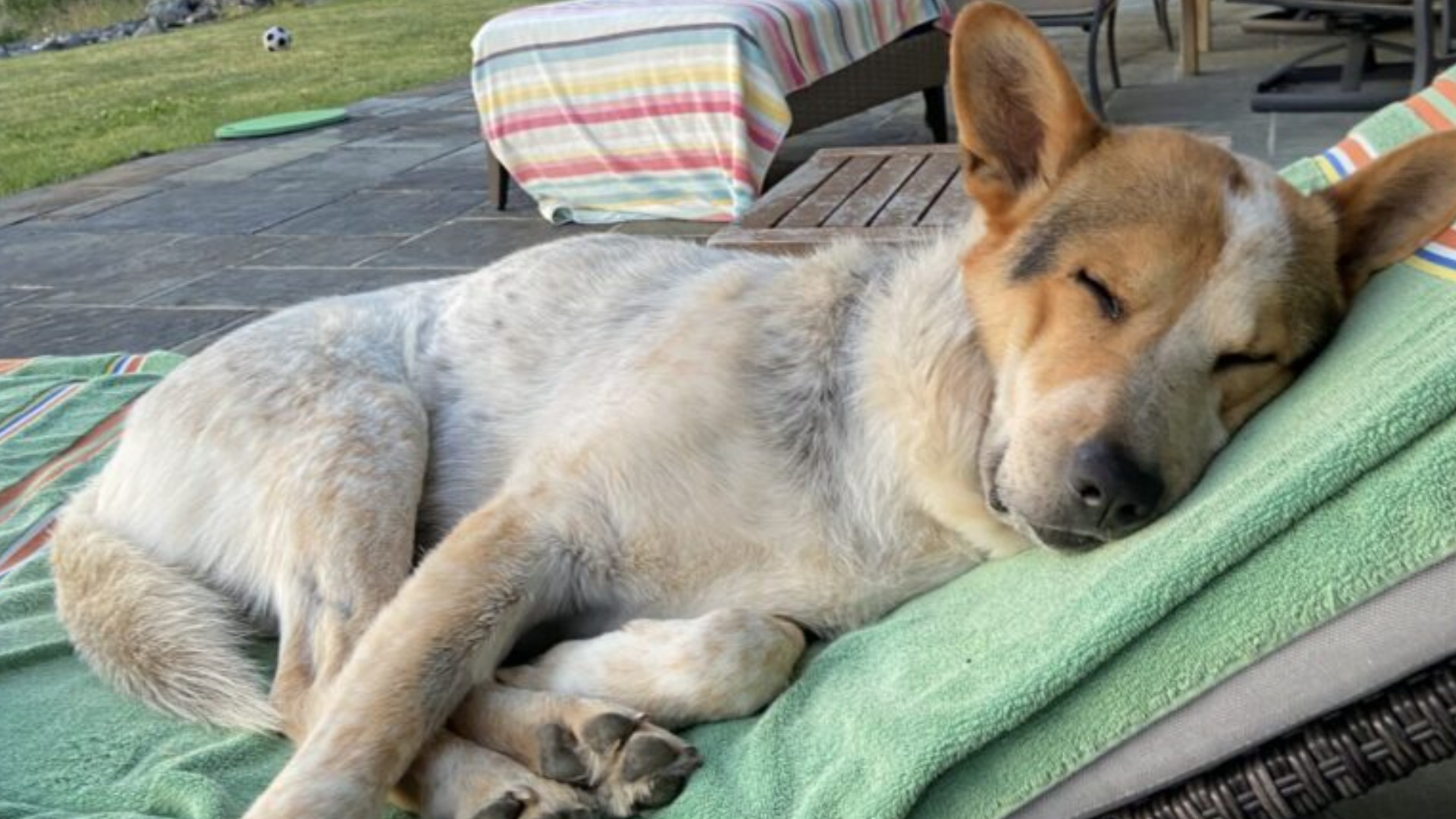 “It only took him two days to be comfortable,” said Sarah, describing her rescued pup as a “lovely, superstar dog.”