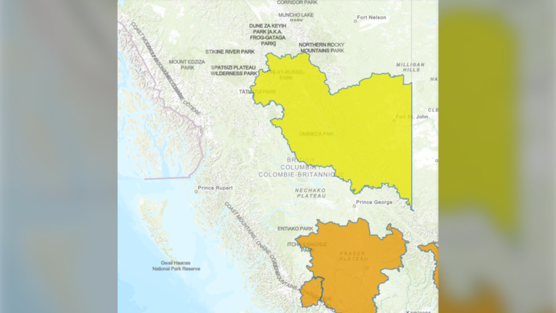 The centre says the high streamflow advisories cover Hudson’s Hope, Chetwynd, Tumbler Ridge, Dawson Creek, Fort St. John, and surrounding areas due to expected rainfall.